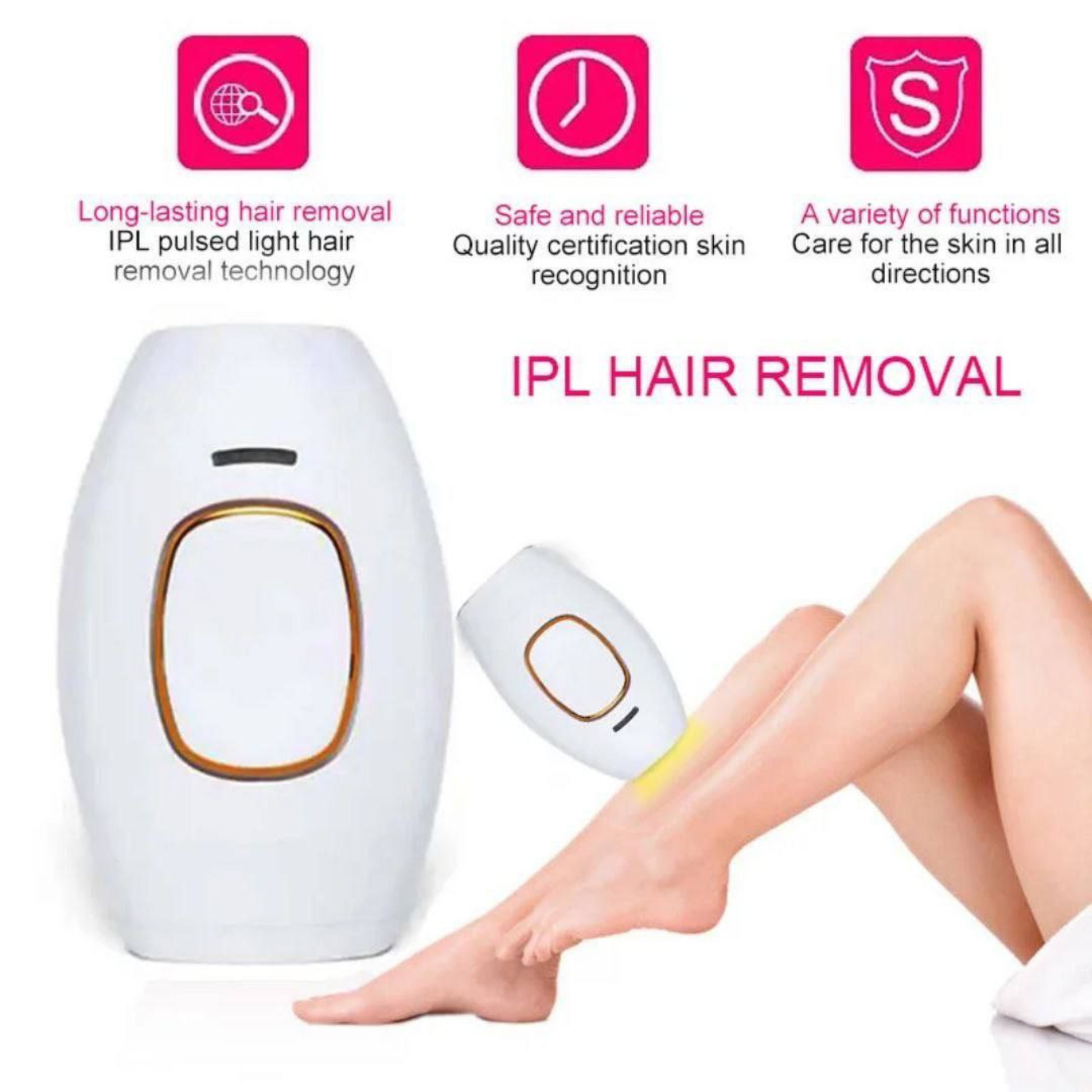 جهاز منزلي متطور يعمل بتقنية النبض الضوئي لإزالة الشعر من الجذور ومنع نموه مجدداً. يوفر حلاً آمناً وفعالاً للحصول على بشرة ناعمة في جميع مناطق الجسم بكل سهولة وخصوصية.